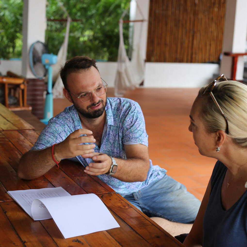 At 8.15AM, meet Sophors and Sophan on the other side of the river, ready to welcome you into your essential oil making journey.